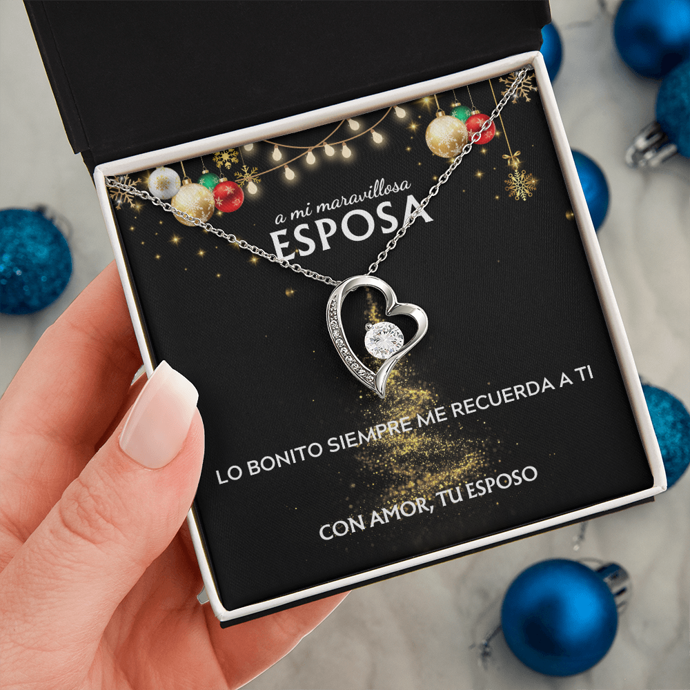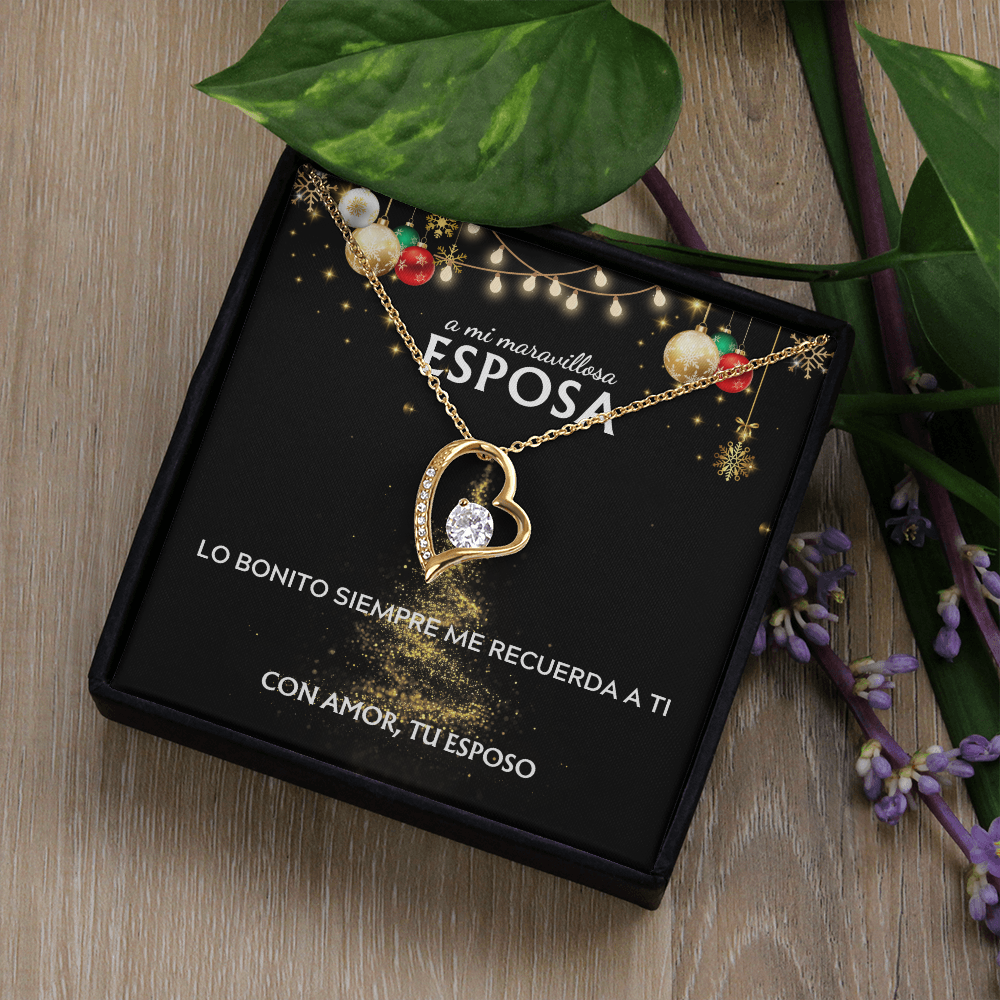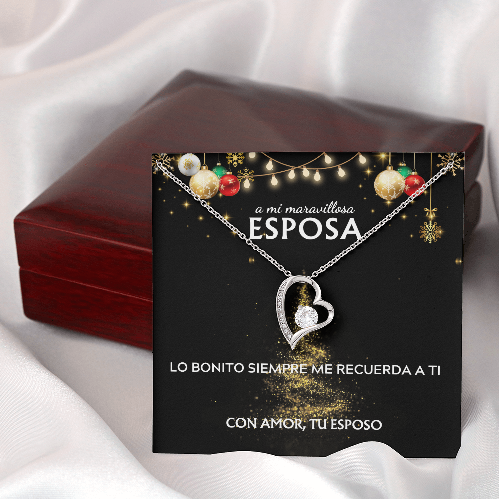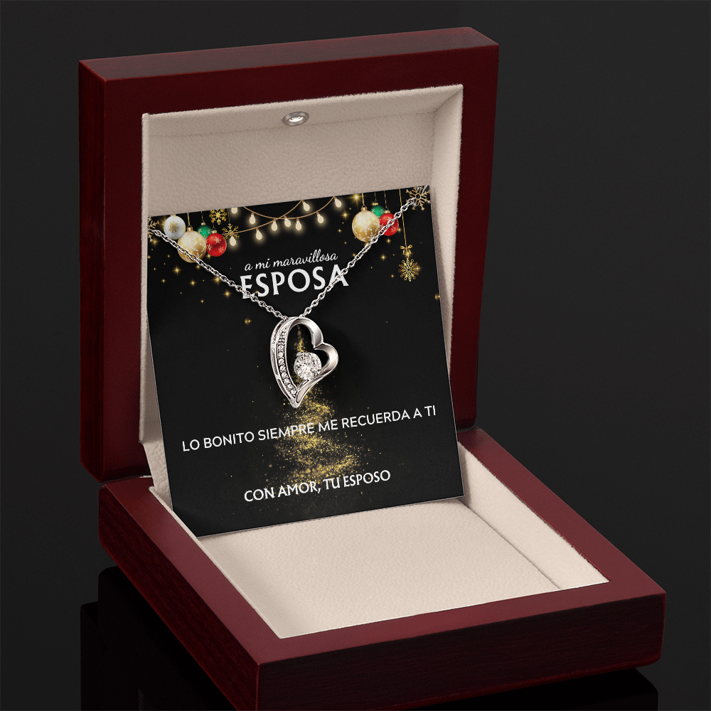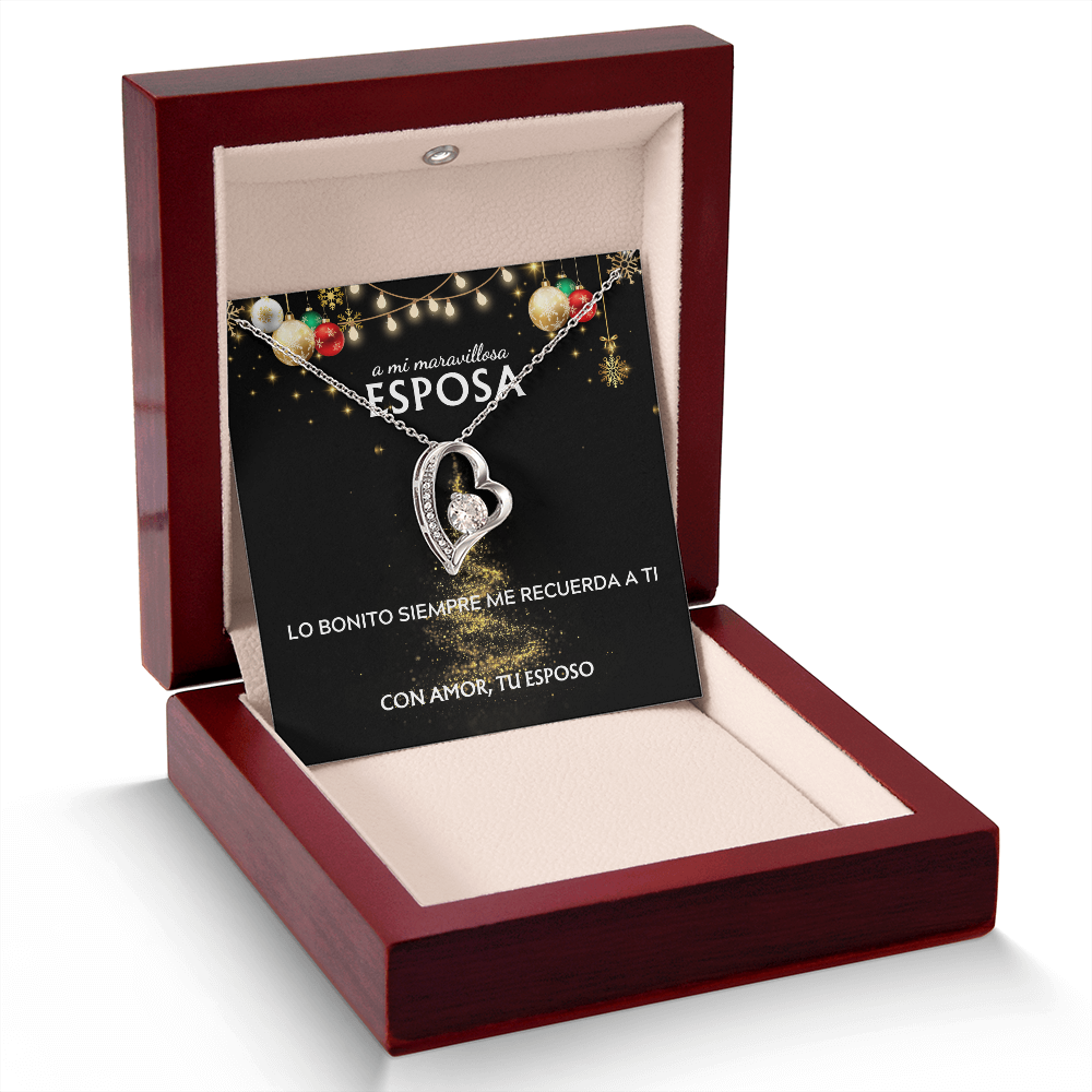 Mi maravillosa esposa... con amor, tu esposo. Tarjeta navideña con collar Forever Love.