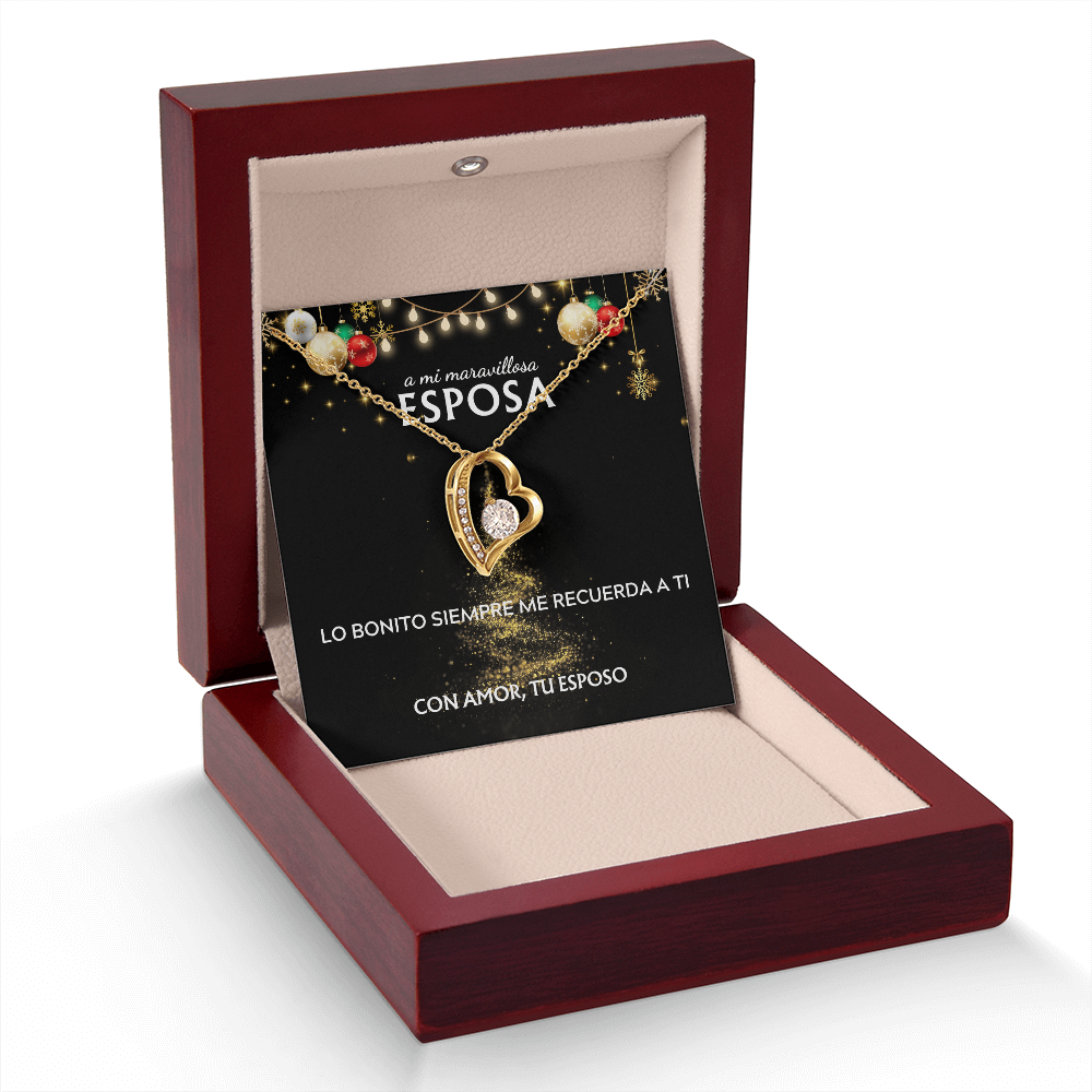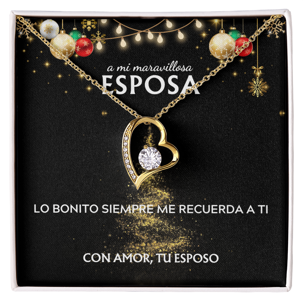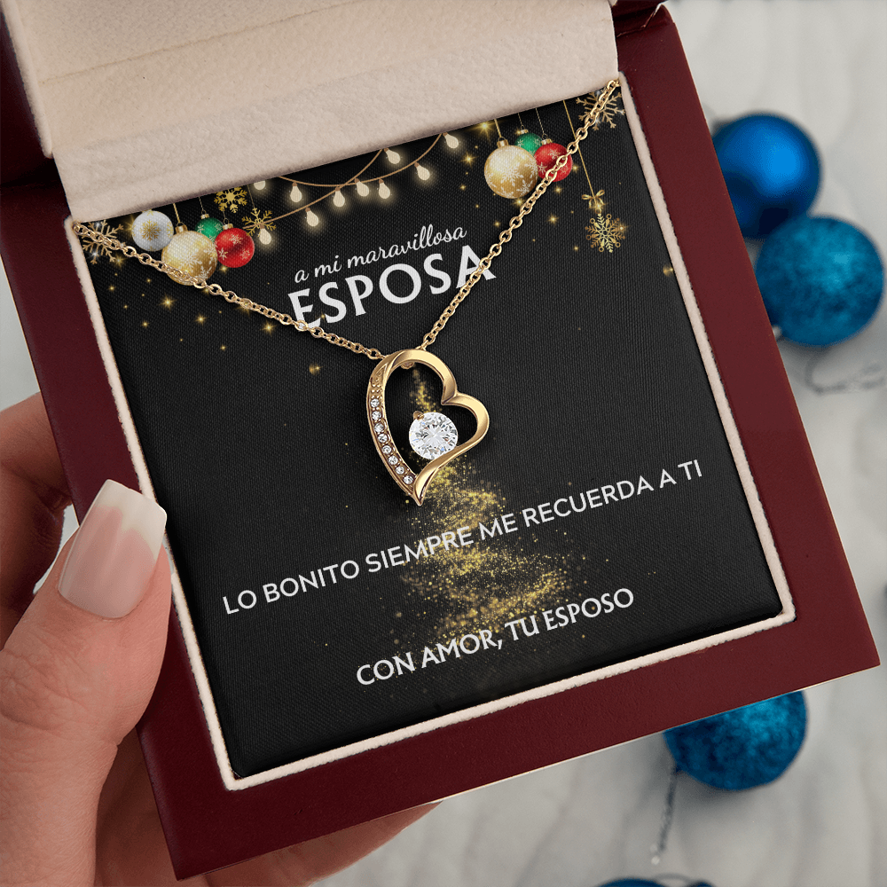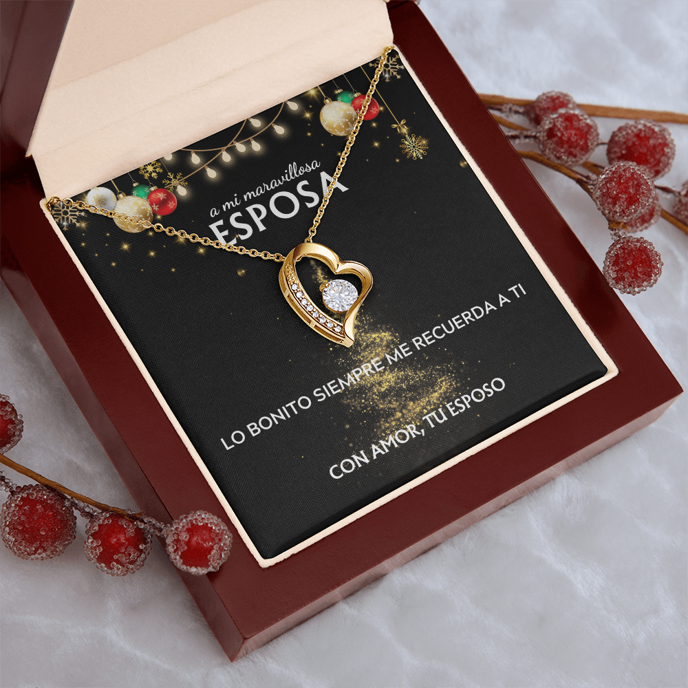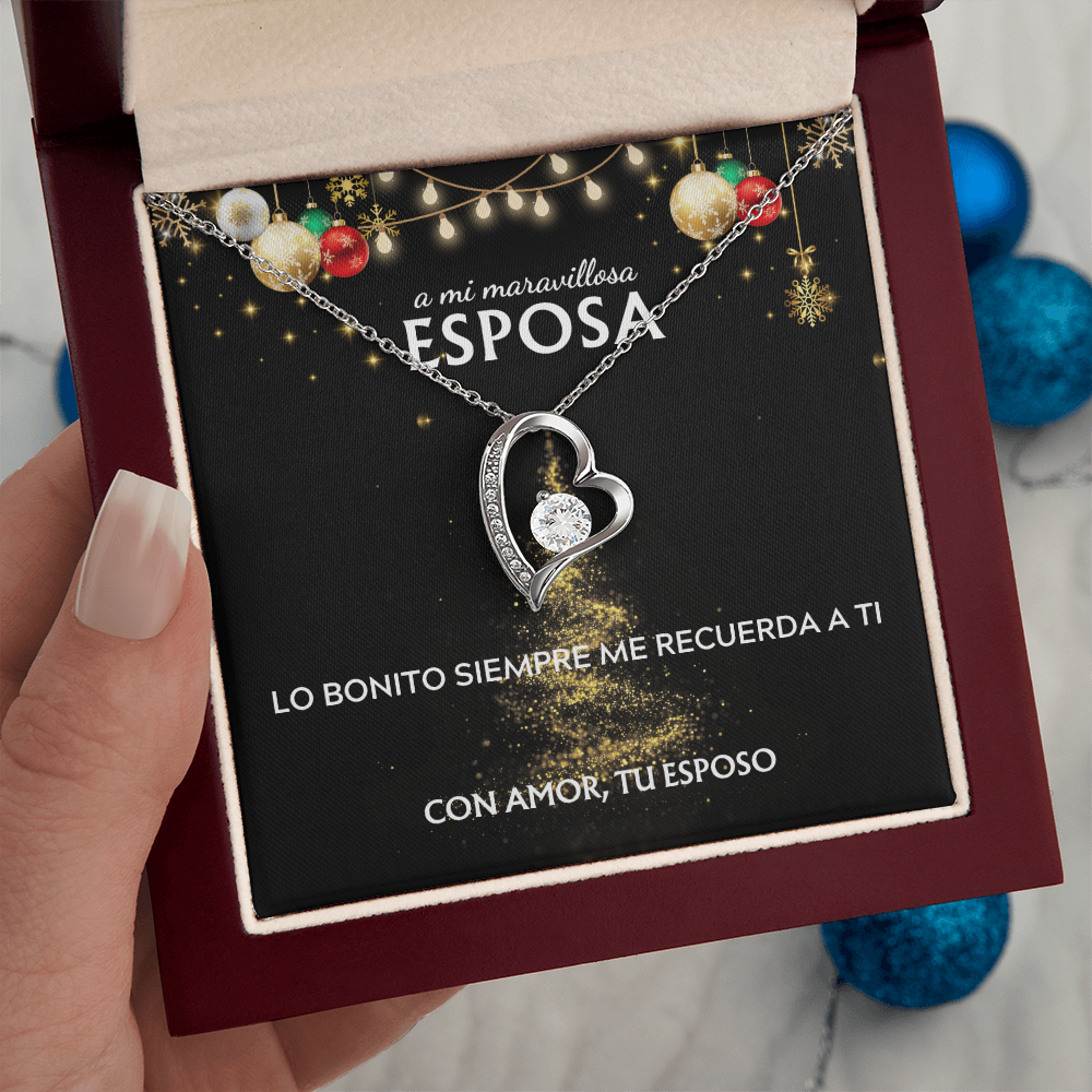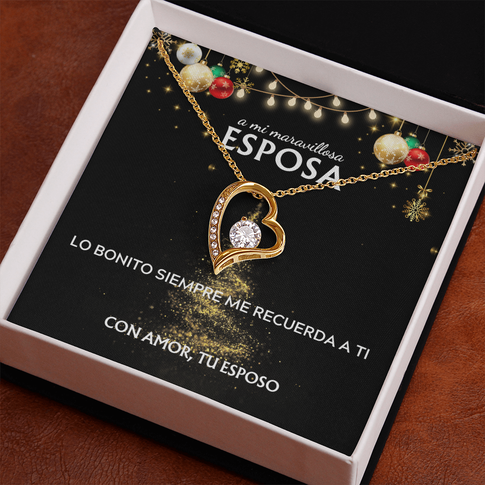 Mi maravillosa esposa... con amor, tu esposo. Tarjeta navideña con collar Forever Love.