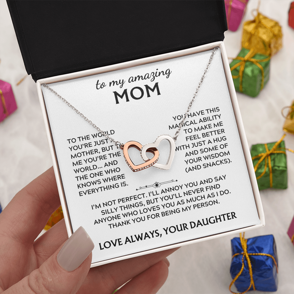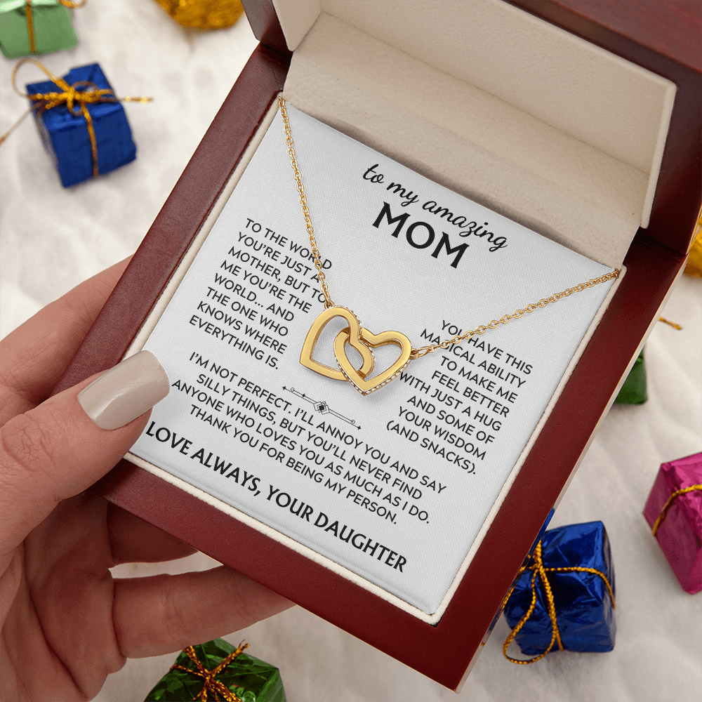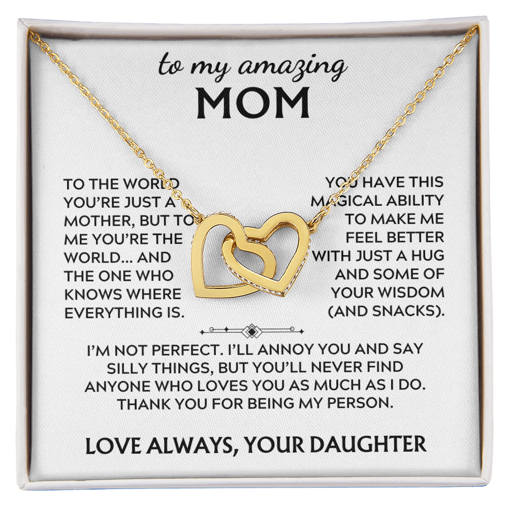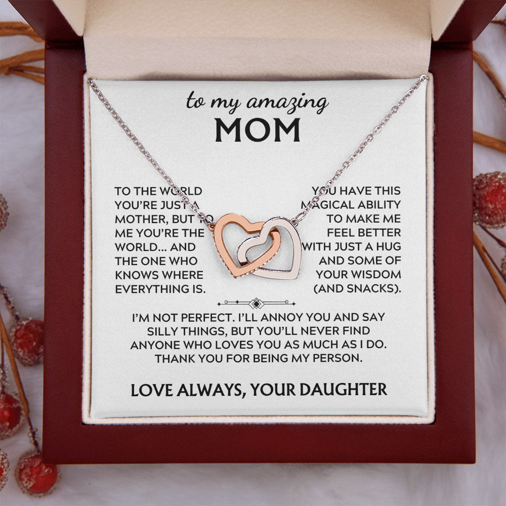 To my amazing Mom... To the world you’re just a Mother, but to me you’re the world... And the one who knows where everything is. You have this magical ability to make me feel better with just a hug and some of your wisdom (and snacks). I’m not perfect. I’ll annoy you and say silly things, but you’ll never find anyone who loves you as much as I do. Thank you for being my person. Love always, your Daughter.