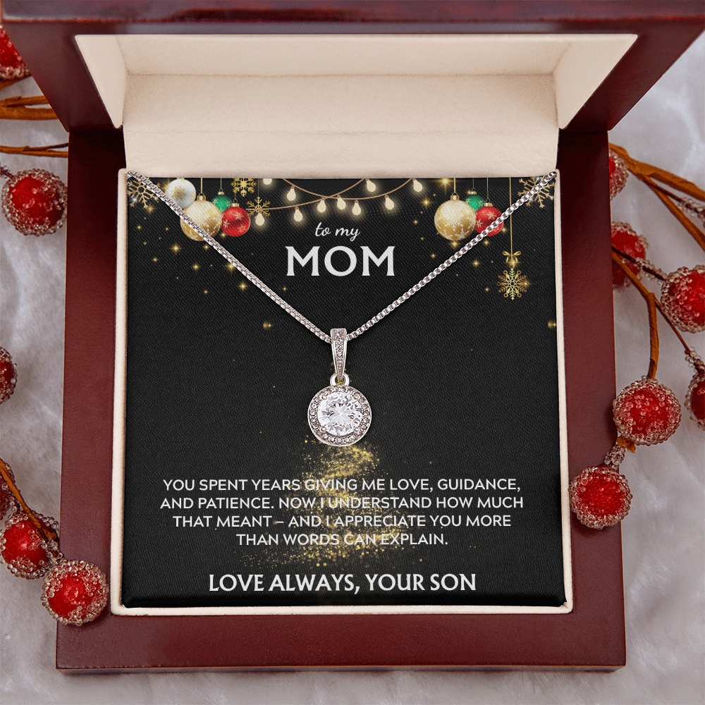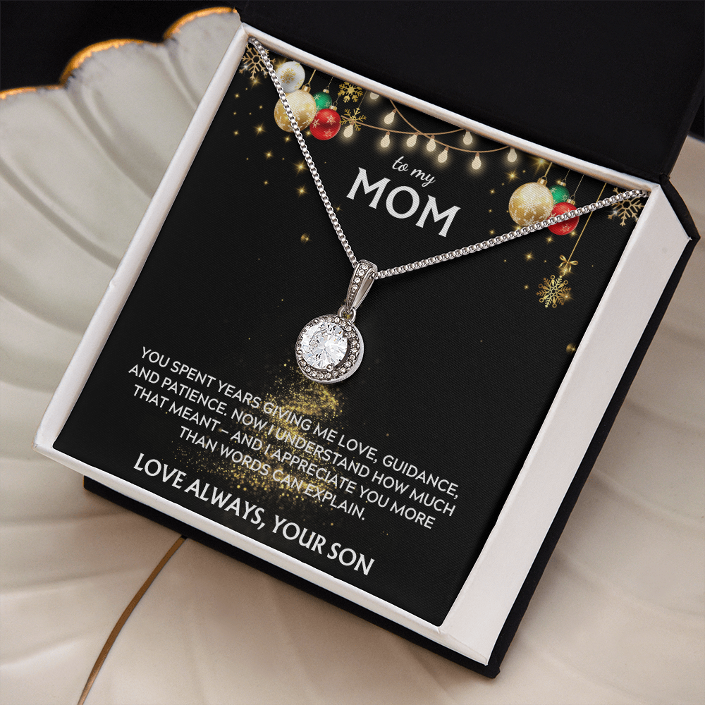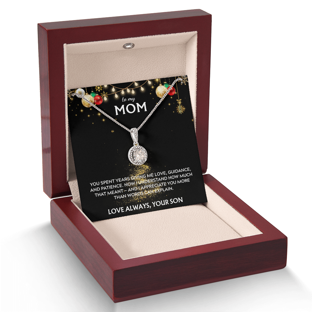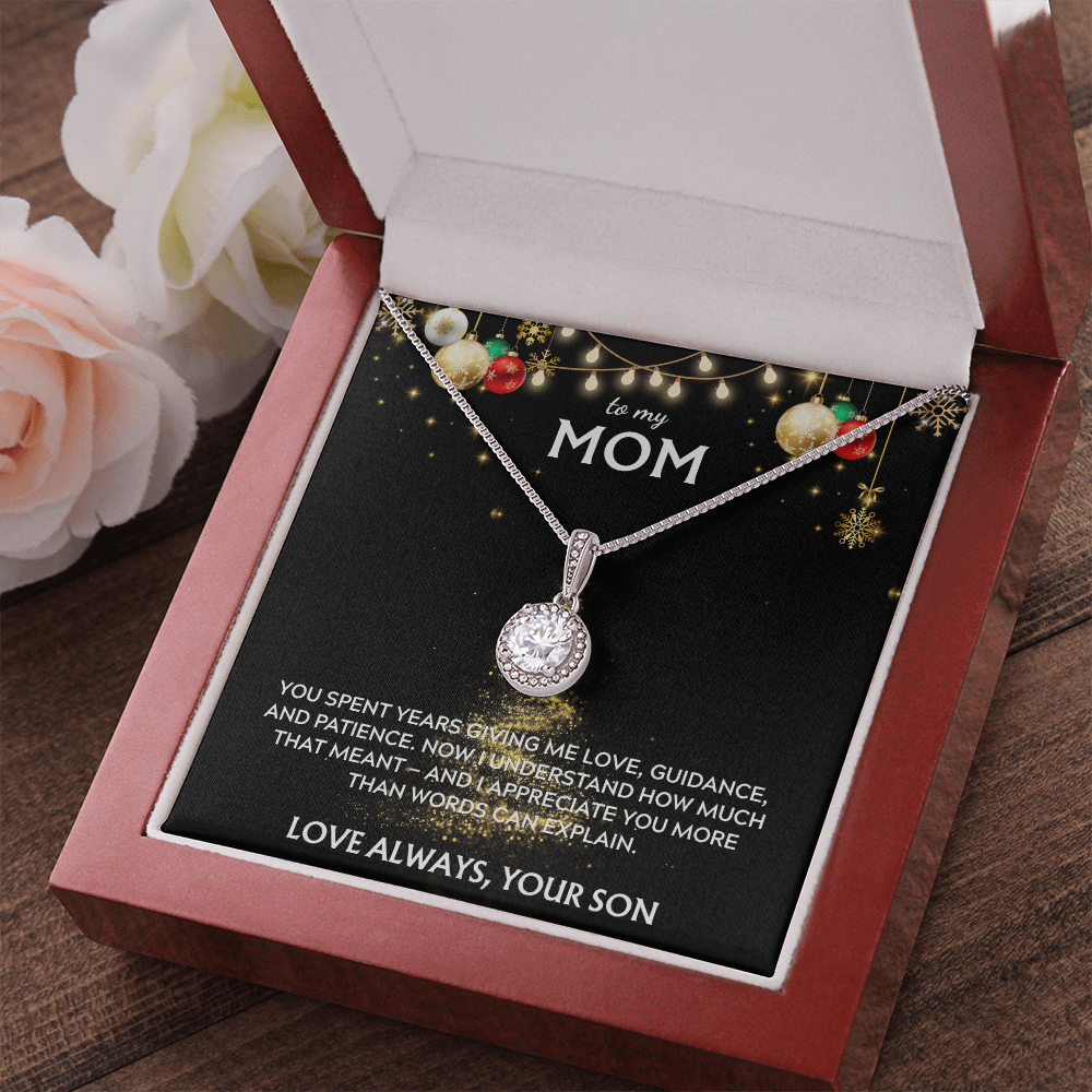 To Mom, from Son. I appreciate you more than words can say. Holiday card.