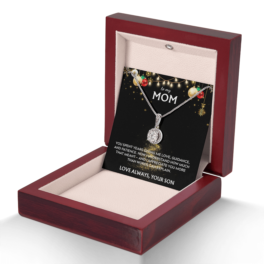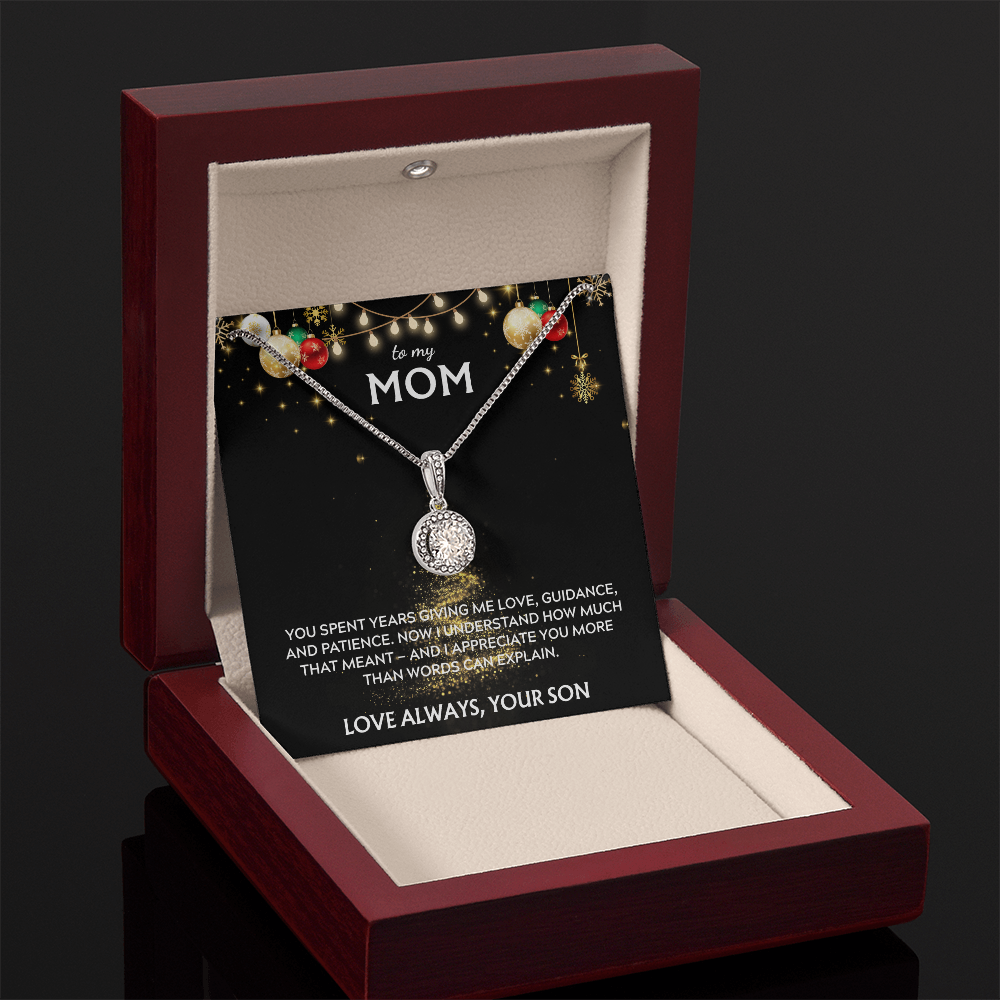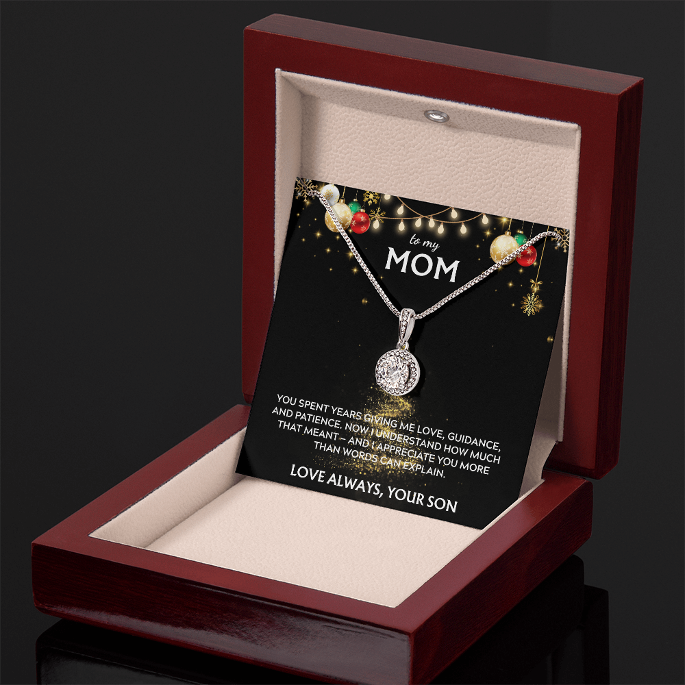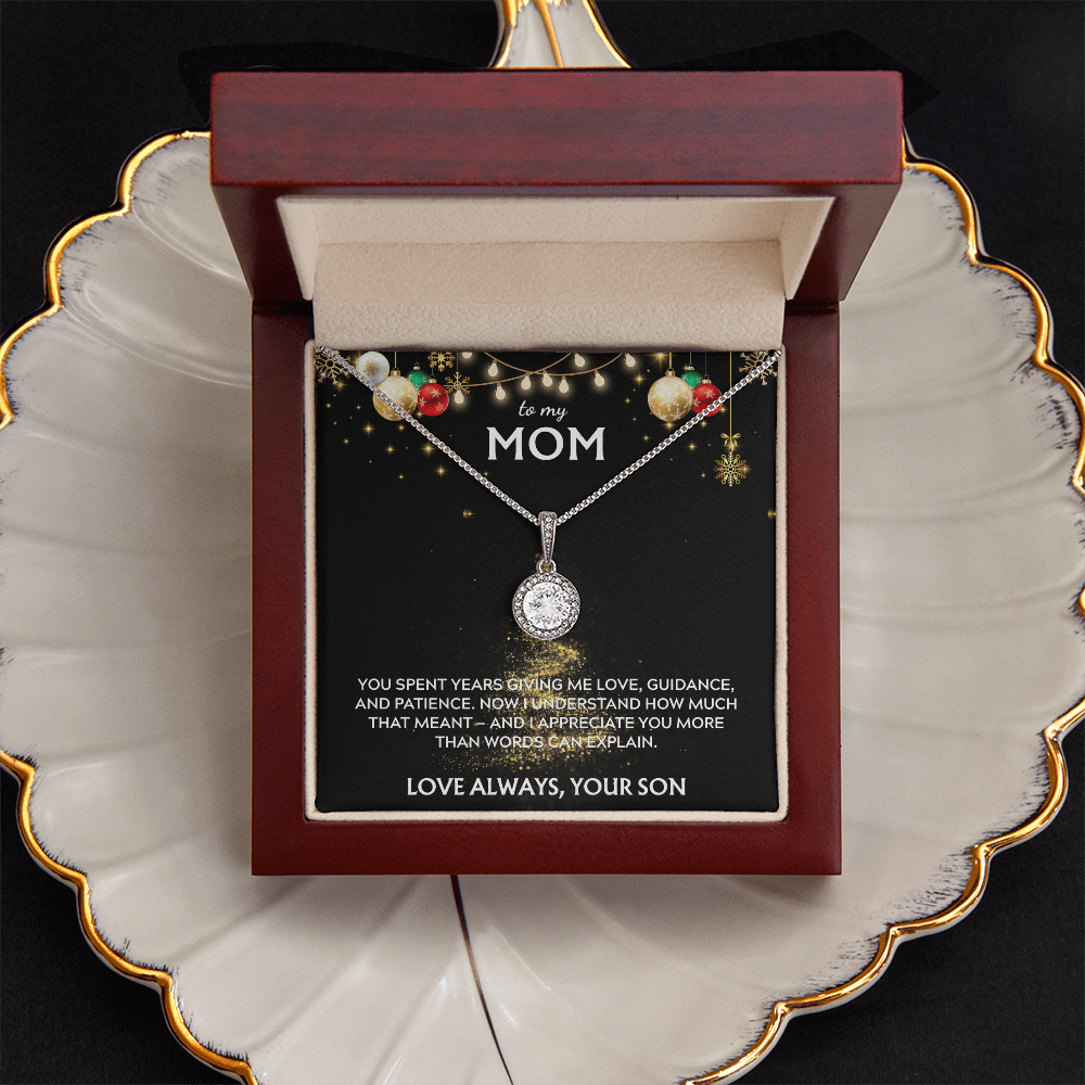 To Mom, from Son. I appreciate you more than words can say. Holiday card.