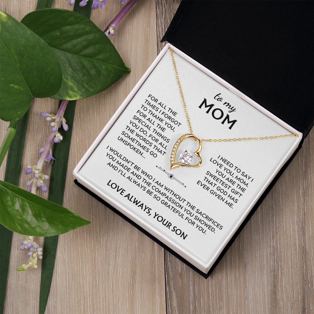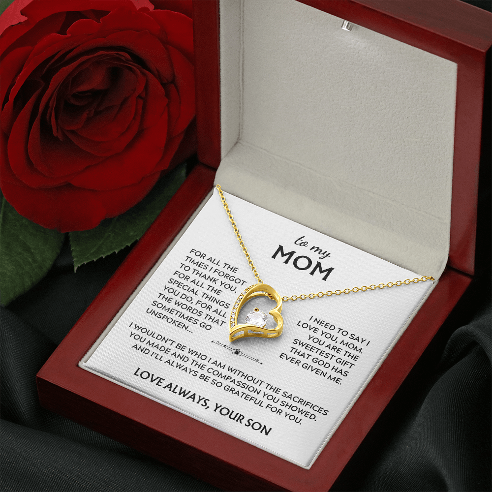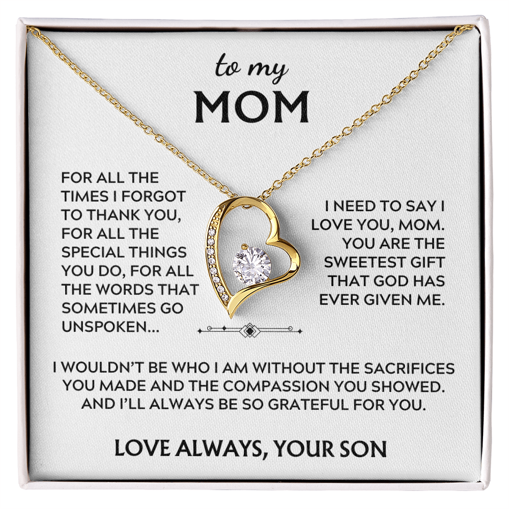 To my Mom... For all the times I fogot to thank you, for all the special things you do, for all the words that sometimes go unspoken... I need to say I love you, Mom. You are the sweetest gift that God has ever given me. I wouldn't be who I am without the sacrifices you made and the compassioin you showed. And I'll always be grateful for you. Love always, your son.