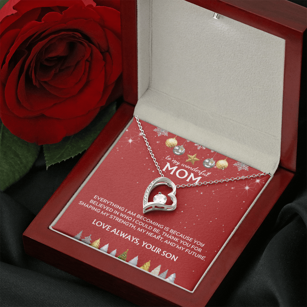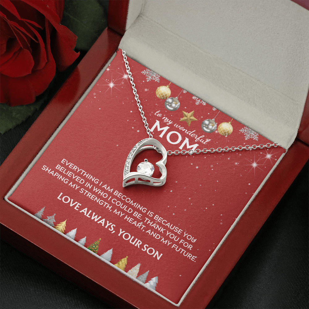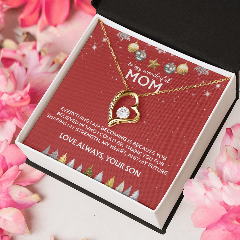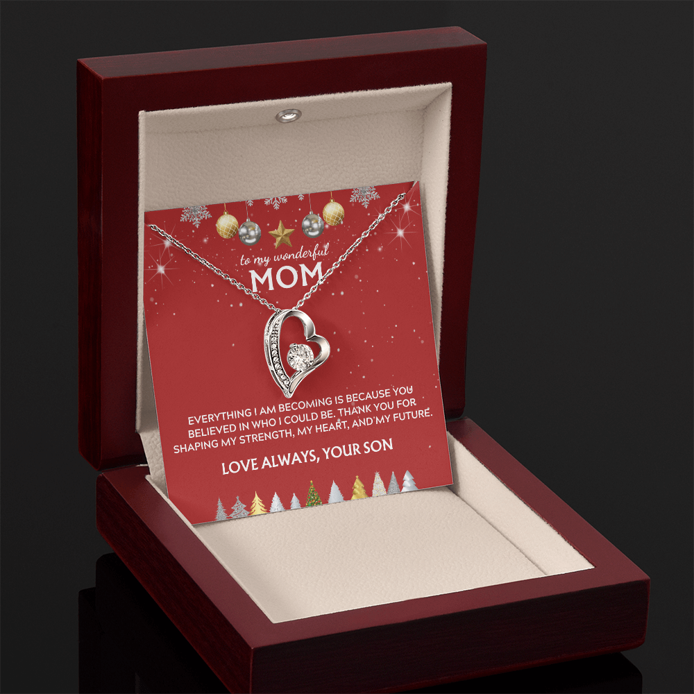 To Mom, from Son. Thank you for believing in me. Holiday card.