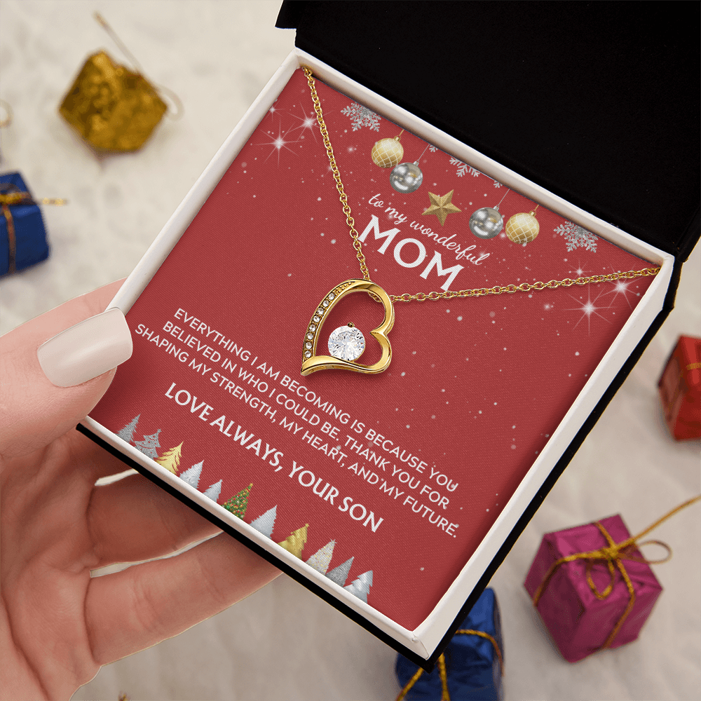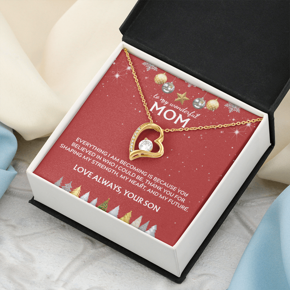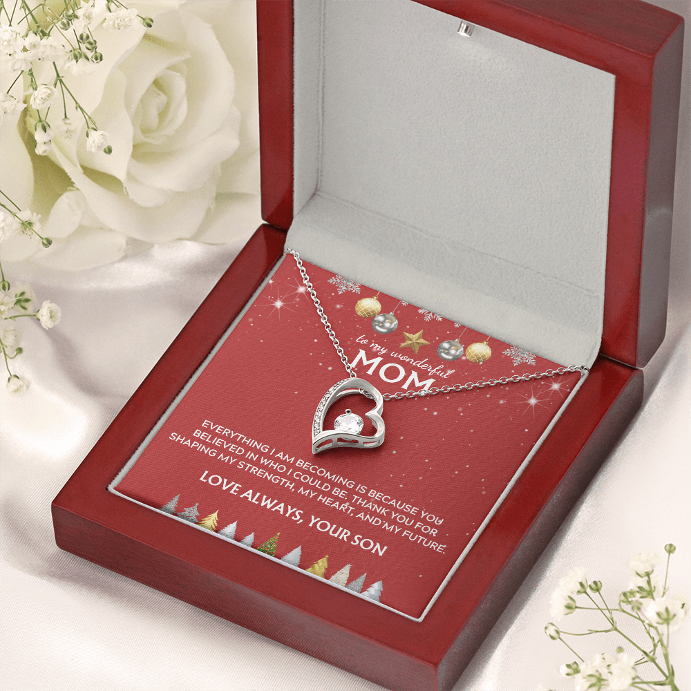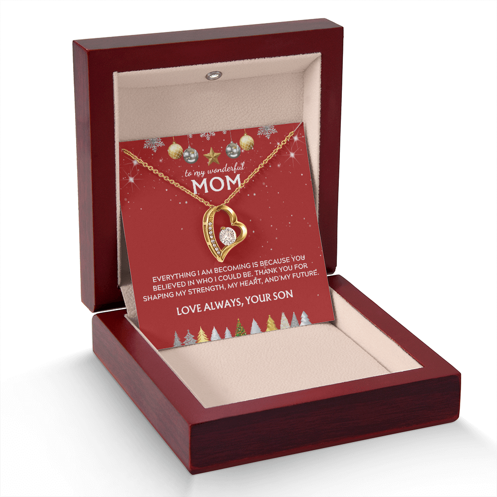To Mom, from Son. Thank you for believing in me. Holiday card.