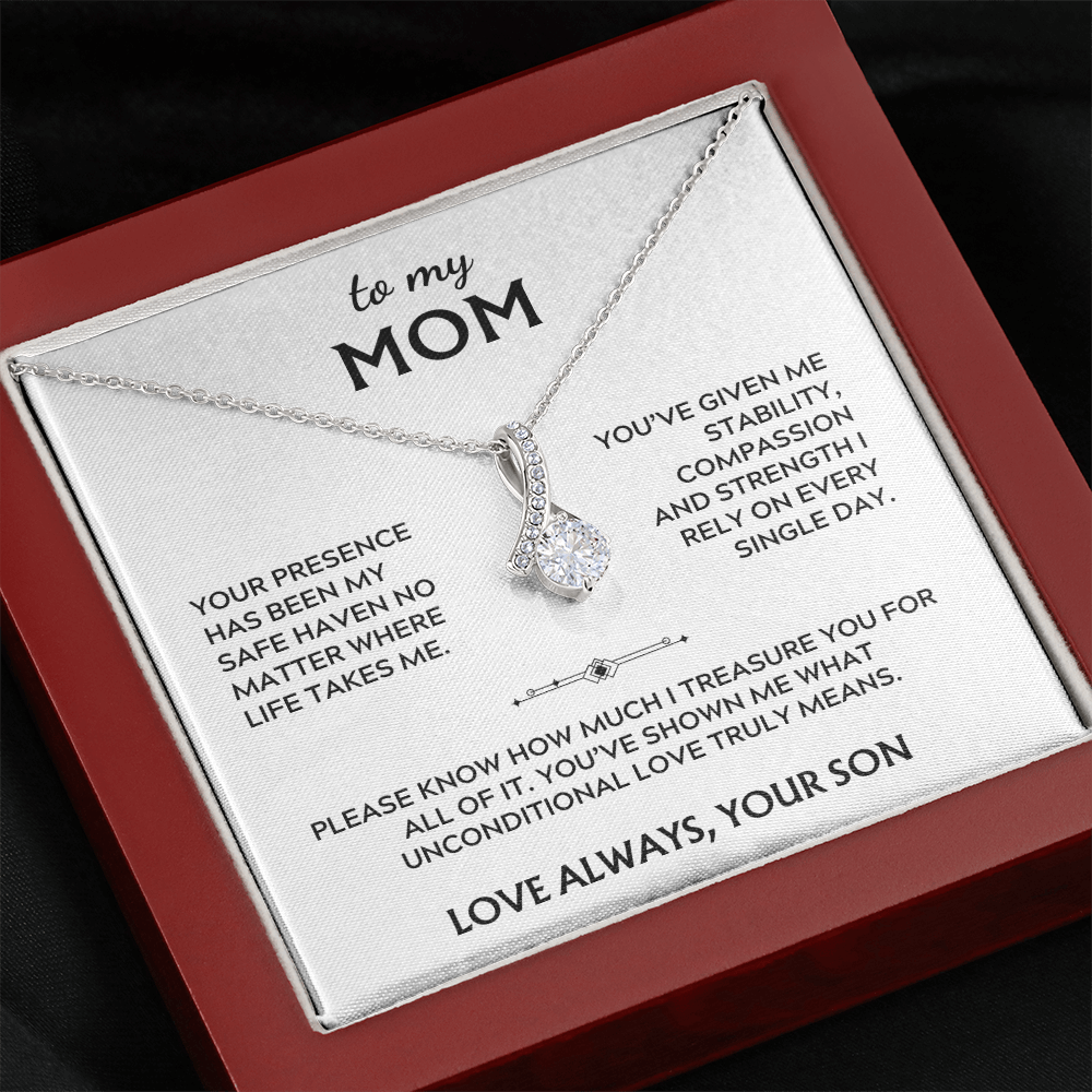 To Mom, from Son. Your presence has been my safe haven.
